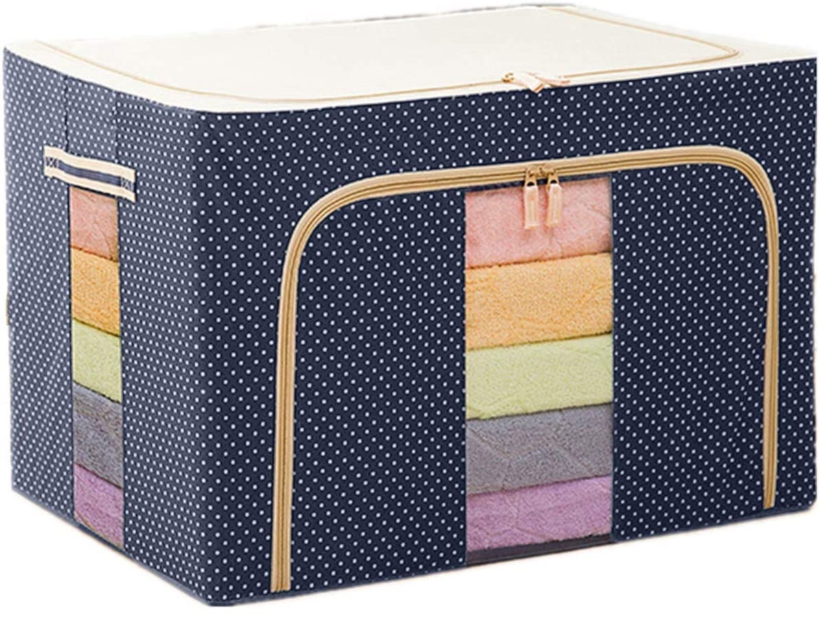 • Stackable Oxford Cloth Steel Frame Storage Box with Front Opening Foldable Clothes Storage Bins Organizer for Sweaters, Blankets, Sheets, Bedding,